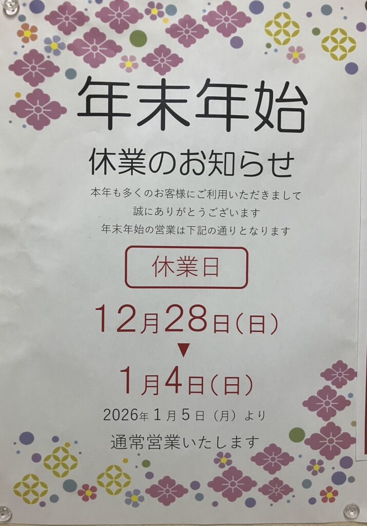 新年は1月5日(月曜日)より通常通り営業いたしますので