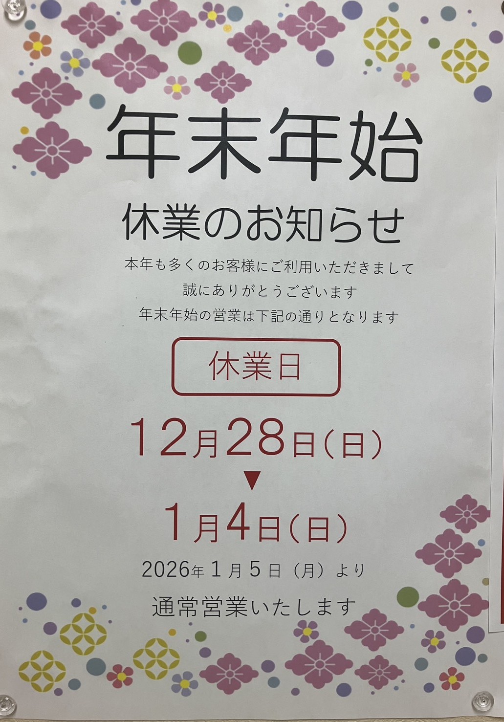 新年は1月5日(月曜日)より通常通り営業いたしますので